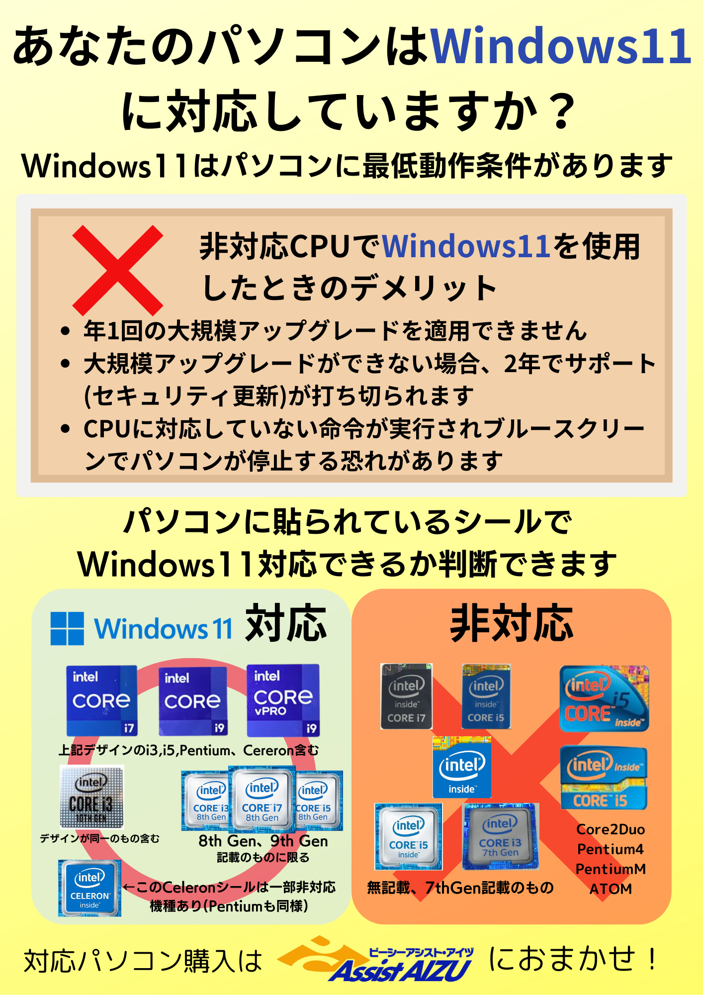 本年10月14日にWindows10のサポートが終了します。Windows11へ移行を考えている皆様。出張修理相談会&リフレッシュパソコン販売会では、格安のWindows11搭載中古パソコンを販売しております。在庫ある場合、当日お持ち帰り可能です。ぜひご来店ください。